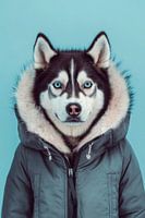 Met helderblauwe ogen die schitteren als twee ijsbloemen en een majestueuze zwart-witte vacht straalt deze Alaska husky een bijzondere fascinatie uit. Gewikkeld in een knusse jas met capuchon ziet hij er tegelijkertijd sportief en charmant uit, alsof hij klaar is voor een avontuur in de winterse wildernis. Een leuk contrast tussen…