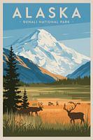 Koop dit landschapskunstwerk Alaska Vintage Reisposter van Poster Art Shop als print op canvas, aluminium dibond, (ingelijste) fotoprint, behang en ArtFrame. Voor jou op maat geprint in Fine-Art kwaliteit.