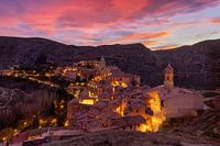 Albarracín is een prachtig stadje gelegen in de heuvels van de provincie Teruel in de Spaanse regio Aragon. Het wordt vaak genoemd als het mooiste dorp van Spanje. Het stadje ligt tegen de wanden van een stijl dal en wordt beschermd door een hooggelegen vesting met een vestingmuur. Vanaf deze vesting is er bij zonsondergang een prachtig uitzicht over het roze gekleurde stadje, wat hier door de spectaculaire zonsondergang nog eens extra roze kleurde.
