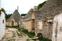 Group of beautiful Trulli, traditional Apulian dry stone hut old houses with a conical roof in Alberobello, Italy