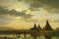 Albert Bierstadt,Zicht op Schoorsteenrots, Ogalilah Sioux Village op de voorgrond
