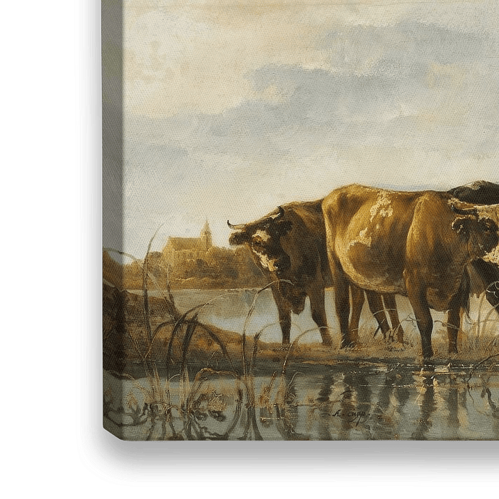 Koop Albert Cuyp. Koeien in een rivier als reproductie op canvas, aluminium dibond, (ingelijste) fotoprint, behang en ArtFrame, op maat geprint in Fine-Art kwaliteit.