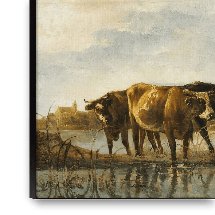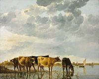 Koop Albert Cuyp. Koeien in een rivier als reproductie op canvas, aluminium dibond, (ingelijste) fotoprint, behang en ArtFrame, op maat geprint in Fine-Art kwaliteit.
