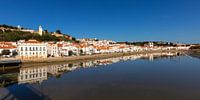 Alcácer do Sal is een stad in de gemeente Setubal in Portugal. Het ligt in de monding van de Rio Sado vlak bij de Portugese westkust in de regio Alentejo. Het heeft een veelbewogen geschiedenis en economisch is het bekend om zout en rijst productie. Bij deze foto zien we de mooi gelegen stad aan de rivier met een prachtige spiegeling in de rivier.
