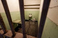 Foto van een cel. Alcatraz is een eiland in de Baai van San Francisco - USA- Amerika. Van 1934 tot 1963 was het in gebruik als zwaar beveiligde gevangenis. 1576 gevangenen hebben het eiland als standplaats gehad. De bekendste gevangene was Alphonse "Al" Capone. Voordien was op het eiland een militair fort (1850-1907) en daarna…