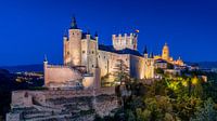 Alcázar van Segovia in Spanje is een kasteel in de autonome gemeenschap Castilla y León. Gefotografeerd in het blauwe uur