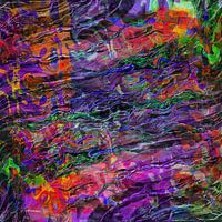 Mijn serie Alchemy-afbeeldingen is gebaseerd op een acrylgieting met digitale toevoegingen. Deze is veelkleurig en vermengt het ontwerp een beetje. Rode en paarse tinten vegen over het oppervlak van het beeld, met kleine groene accenten. Gedurfd, kleurrijk en sterk.