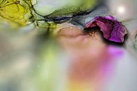 Abstracte alcoholinktschildering met zachte kleurovergangen in geel, groen en paars. Het samenspel van transparantie, diepte en beweging geeft deze moderne muurschildering een bijzondere, harmonieuze uitstraling.