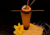 Alcoholvrije cocktail met cassis siroop en verse passievrucht. Heerlijke en fruitige alcoholvrije cocktails geserveerd in een glas