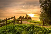 Kerk toren.Terp.ondergaande zon.landschap.Landschapsfoto.
