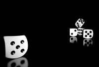 Deze visueel aantrekkelijke foto verwijst naar de beroemde zin "Alea iacta est" (De teerling is geworpen) en legt de essentie van toeval en inzet tijdens het spelen vast. Kraakheldere witte dobbelstenen worden gepresenteerd tegen een puur zwart, reflecterend oppervlak, waardoor een scherp beeld met een hoog contrast ontstaat. De…