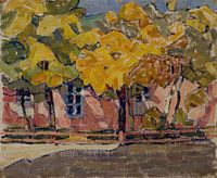 Aleksandr Konstantinovitsj Bogomazov (1880-1930) was een Oekraïense schilder, kunsttheoreticus en een van de belangrijkste vertegenwoordigers van de Oekraïense avant-garde. Hij wordt beschouwd als medeoprichter van het kubofuturisme en ontwikkelde zijn eigen kunstfilosofische doctrine van ritme, beweging en vorm in zijn theoretische werk "Schilders en Elementen" (1914). Zijn werken combineren kubistische structuren met futuristische dynamiek en tonen vaak landschappen, stadsgezichten en scènes uit het moderne leven. Bogomazov was ook leraar aan de Kunstacademie van Kiev en beïnvloedde talloze jonge kunstenaars.