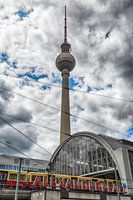 Heerlijke cityscape foto van het treinstation Berlin Alexanderplatz. Op de achtergrond is de iconische Fernsehturm zichtbaar.