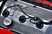 Beeldvullende mooie close-up van details van een motorblok,retro racecar,Alfa Romeo.Spa Francorchamps circuit,Spa Classics 2013 evenement.