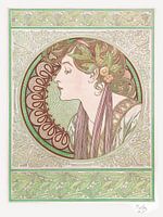Alfons Mucha (1860 - 1939) was een beroemde Tsjechische schilder. Samen met Gustav Klimt is hij een van de beroemdste schilders van de Art Nouveau. Veel van zijn schilderijen hebben tegenwoordig een cultstatus.