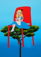 Alice in Wonderland, een detail van een reeds verkocht schilderij genaamd "Lies higher than trees".