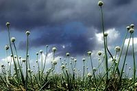 Even buiten Sint Kruis ligt een uitloper van het Groote Gat, de Oude Biezenkreek. Aan de Zompelweg lag dit uienveld tegen een contrastrijke lucht. Met een laag standpunt (knieën in de slik) en een forse groothoek krijg je dan dit surrealistische beeld ...