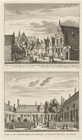 Leonard Schenk, Twee gezichten op Alkmaar met het Pesthuis en het Sint-Elisabethgasthuis, naar Abraham Rademaker, 1746