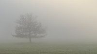 Een solitaire boom, middenin een woonwijk. Normaal onopvallend bij helder weer, maar nu vond ik de eenzaamheid van de boom een bepaalde kracht uitstralen doordat hij vanwege de mist helemaal alleen op de wereld lijkt.