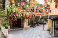 Het dorp trekt veel toeristen. Toch kent het ook zijn stille momenten. Zoals op de foto, aan het eind van de middag. De restaurants zijn nog dicht, de mensen gaan naar hun huis of rusten uit in hun hotel.