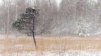 Alleenstaande boom in besneeuwd heidelandschap in Beieren