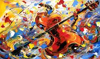 Kleurrijk schilderij in de abstract expressionistische stijl van Jackson Pollock met als thema levendige opzwepende muziek in het Allegro Vivace tempo.
