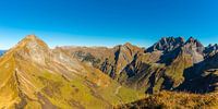 Höfats 2259m, Nebelhorn, 2224m, Oytal, Laufbacher-Eck-Weg, Rädlergrat am Himmelhorn, 2111m, Schneck, 2268m, Himmeleck, 2145m, Großer Wilder, 2379m und Kleiner Wilder, 2306m, Allgäuer Alpen, Allgäu, Bayern, Deutschland, Europa