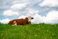 Allgäuer koe in een bloemenweide