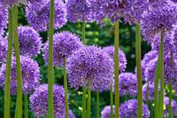 Allium, ofwel uienbol. Hier gefotografeerd met de focus op de middelste waardoor de overige, minder scherp weergegeven, als kader functioneren.