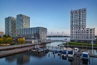 Zicht op de Koetsierbaan vanaf het Deventerpad, met links de wooncomplexen 'Side by Side' en 'The Wave' en rechts 'Silverline'.