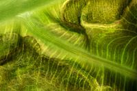 Als een gletsjer die langs de bergen naar beneden glijdt, zo zijn de nerven van het blad van de olifantenoor plant (Alocasia) gevormd. Gefotografeerd met de macro lens, van heel dichtbij is dit een mooi stuk moderne kunst. De kijken zal stilstaan en zich verwonderen over wat het is waar hij naar kijkt.