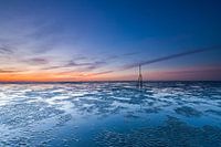 Slikken langs de Westerschelde tijdens zonsondergang.