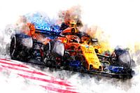 Illustratie van een serie legendarische Formule 1-racers en hun coureurs. Ontworpen uit liefde voor het klassieke racen. Geschilderd met aquarellen op papier.