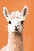 Alpaca in Oranje is een illustratie van een elegante lama met een grungy oranje achtergrond. Met de prachtige warme kleuren en een mooi contrast is dit echt een eye catcher.