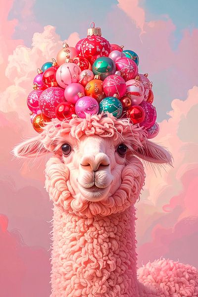 Koop dit Popart kunstwerk Alpaca met kerst... van Ans Bastiaanssen op canvas, aluminium dibond, (ingelijste) fotoprint, behang en ArtFrame, op maat geprint in Fine-Art kwaliteit.