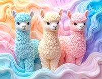Drie alpaca's, in zachte kleuren, van zeep gemaakt. Schattiger wordt het niet, hier smelt je toch van. Het beeld is met behulp van ai gegenereerd.