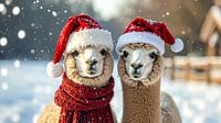 Alpaca's met kerstmuts... van Ans Bastiaanssen