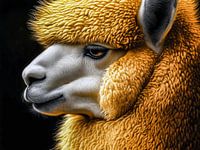 Dit portret van een alpaca straalt rust en sereniteit uit. De fijne details van de pluizige, oranjekleurige wol en de zachte gelaatstrekken van het dier komen…