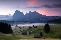 Ochtendsfeer op de Seiser Alm in de Dolomieten, zomer in Zuid-Tirol, Italië