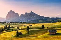 Zonsopgang op de Alpe di Siusi in de Dolomieten