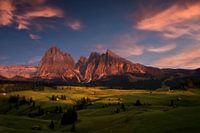 Zonsondergang op de Alpe di Siusi in de Dolomieten