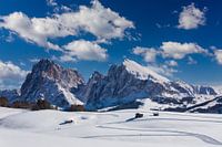 Langkofel en Plattkofel boven de Alpe di Siusi in de Dolomieten