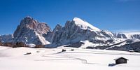 Langkofel en Plattkofel boven de Alpe di Siusi in de Dolomieten