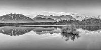 Bergen in de Alpen in Beieren met Karwendel Alpenglow. Zwart-wit 90210135ays