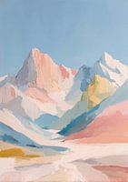 Dit minimalistische olieverfschilderij toont de Alpen in het ochtendlicht, geïnspireerd door Henri Matisse en het fauvisme. Sneeuwtoppen domineren de compositie, terwijl zachte pasteltinten van roze, blauw en geel rust en harmonie uitstralen. Strakke lijnen, subtiele texturen en het gerichte gebruik van licht en schaduw creëren diepte en levendigheid. De abstracte vormen en gedurfde kleurcontrasten combineren modernisme met impressionistische elegantie, waardoor een sfeervol, minimalistisch landschapschilderij ontstaat dat de schoonheid en helderheid van het Alpenlandschap viert.