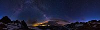Prachtige panoramische foto van de sterren en de melkweg in de Zwitserse Alpen op de top van de Furkapas