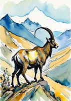 Koop dit schilderij Alpenbokken aquarel van MIROKKU als reproductie geprint op canvas, aluminium dibond, (ingelijste) fotoprint, behang en ArtFrame. Voor jou op maat geprint in Fine-Art kwaliteit.