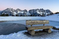 Alpengloren bij de Wilder Kaiser met Astbergsee, Going, Tirol, Oostenrijk