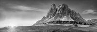 Koop dit landschapskunstwerk Alpenpanorama op een bergweide in de Dolomieten. Zwart-wit foto. van Manfred Voss, Zwart-Wit Fotografie op canvas, aluminium dibond, (ingelijste) fotoprint, behang en ArtFrame, op maat geprint in Fine-Art kwaliteit.