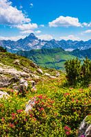 Alpenrozen en de berg Hochvogel, Allgäuer Alpen, Beieren, Duitsland
